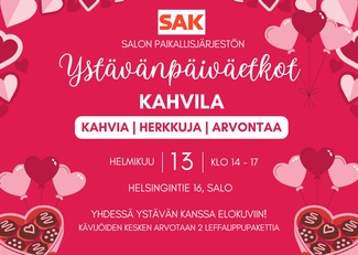 Toimistolla (Helsingintie 16, Salo) tarjolla kahvia ja pieniä herkkuja jäsenistölle klo 14-17.