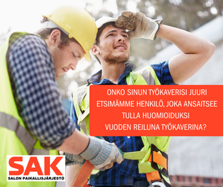 Viime vuonna SAK:n Salon paikallisjärjestö palkitsi aktiiveja, tänä vuonna haluamme palkita reiluja työkavereita.