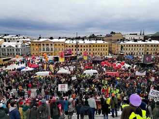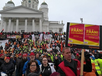 2.2.2018 SAK:n #ÄÄNI TYÖTTÖMÄLLE keräsi väkeä Senaatintorille
