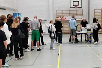 Salon ammattiopistolla pitämässä liittoinfotilaisuutta.